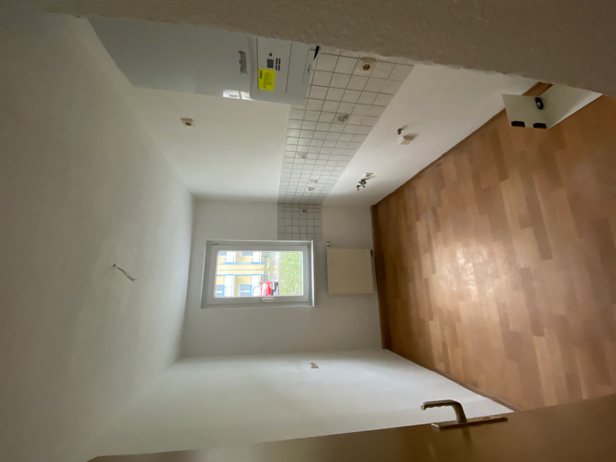 Wohnung ist komplett renoviert; Raufasertapete weiß; PVC – Fußbodenbelag