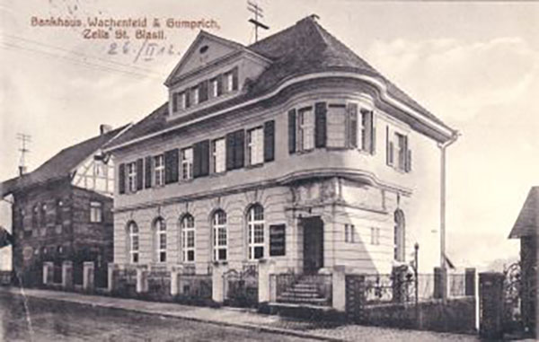 Das Haus selbst wurde im Jahr 1906 von den Kaufleuten Wilhelm Wachenfeld aus Schmalkalden und Friedrich Jacob Gumprich aus Neustadt an der Haard als Filiale des Bankhauses Wachenfeld & Gumprich, Schmalkalden erbaut.
